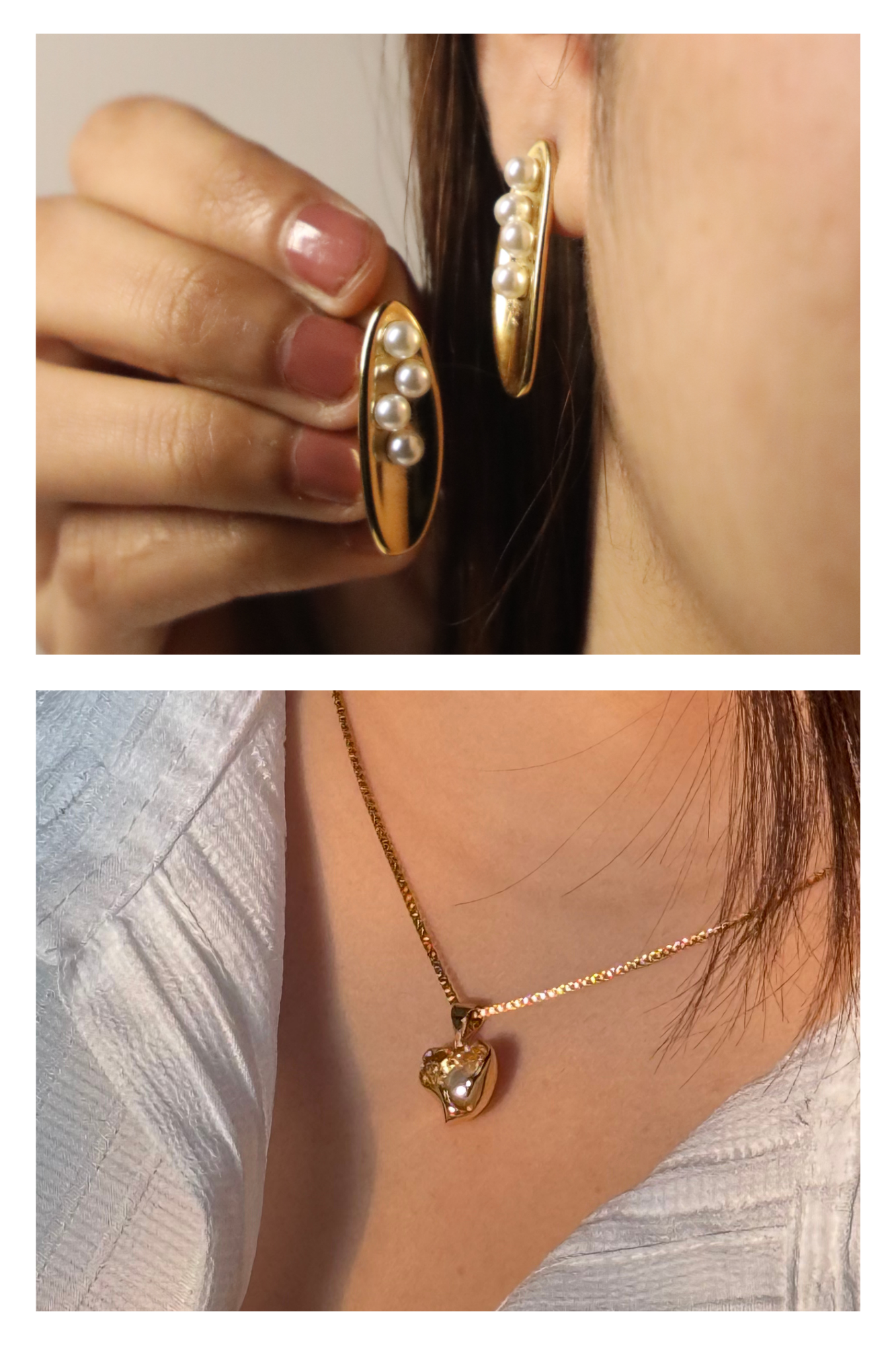 This Combo contains one pair of Pearls on the Boat Earrings and a piece of Pearl Shell Necklace.